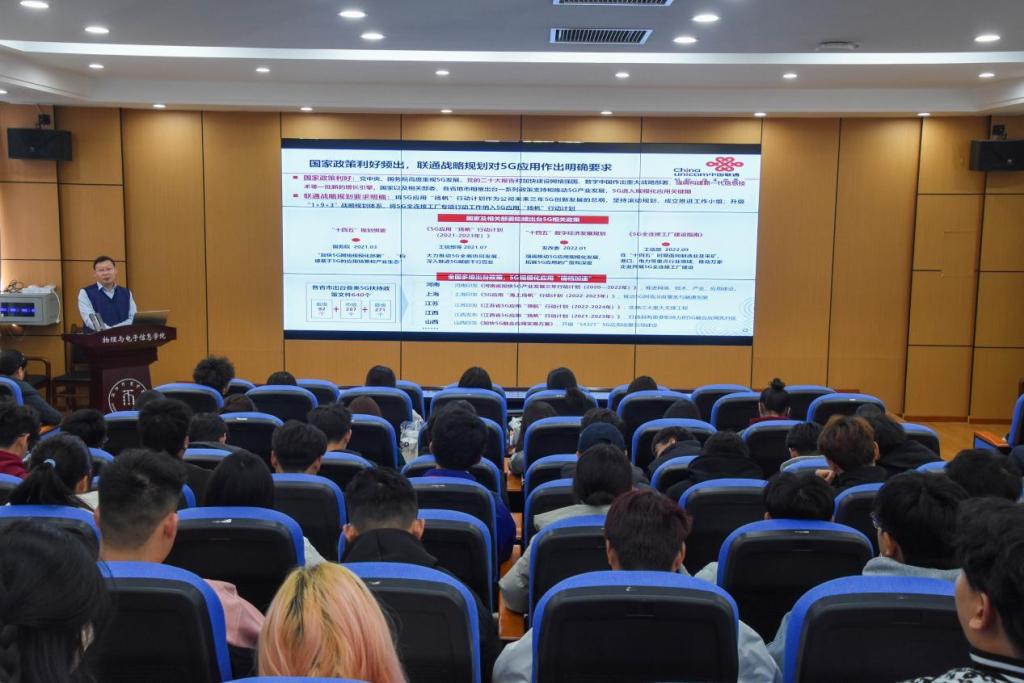 他讲道,当前中国联通在5G网络建设中的部署策略,作为国内四大通信服务提供商,中国联通在推动5G技术的发展中扮演着重要角色。他鼓励同学们要在实践中积极探索、勇于创新,不断提高自己的学术素养和实践能力,期盼大家能到联通公司交流实践。
