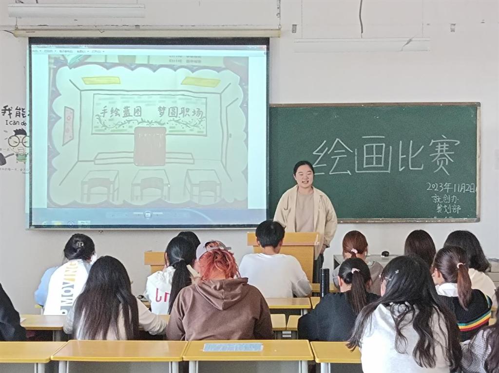 经过前期的作品征集及初筛,进入决赛的选手充分发挥自己的想象力,用手中的画笔描绘出了一幅幅充满创意的职场蓝图,在对目标职业的认知基础上,现场展示自己描绘出的未来职业场景和具体职业生涯规划实施路径。作品内容丰富多样,既有对未来职场的畅想,也有对现实职场的反思。经过评委认真评审,最终侯一彤、白靖宇等同学脱颖而出获得荣誉。