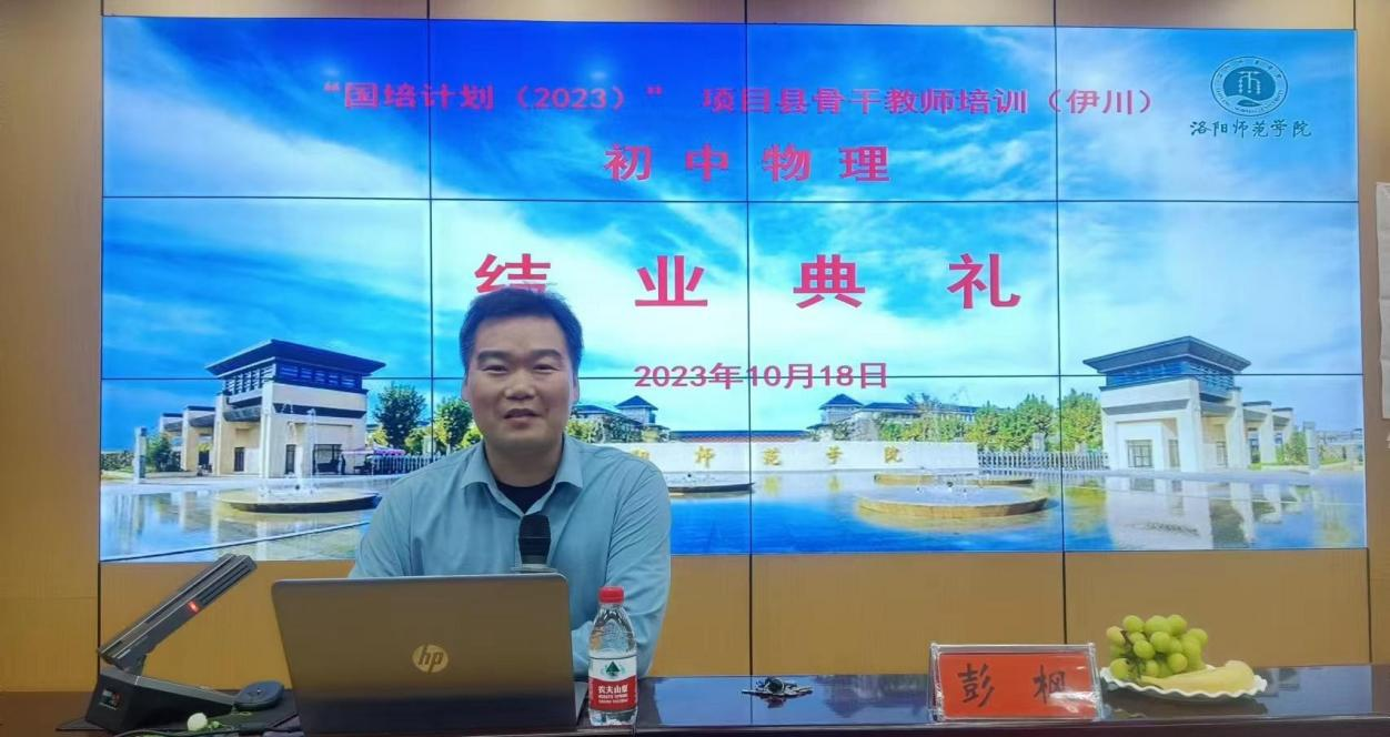2023年10月18日下午,“2023年国培计划伊川县初中物理骨干教师培训项目”结业典礼在物理楼报告厅举行。物理与电子信息学院院长彭枫、教师代表以及来自伊川县各中学的50名物理教师参加了典礼。
