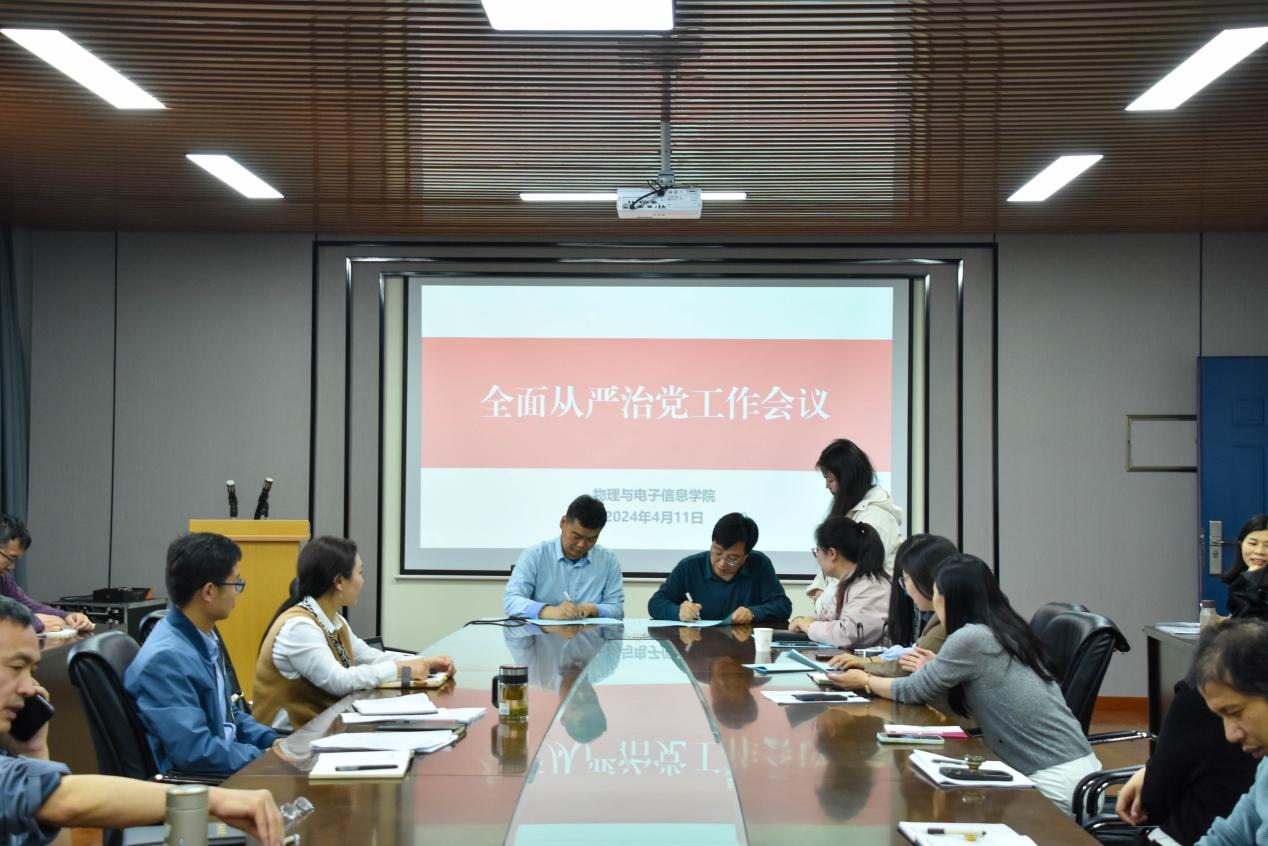 4月11日,我院在物理楼305召开2024年全面从严治党工作会议。学院全体教职工参加会议,会议由党委书记席明旺主持。