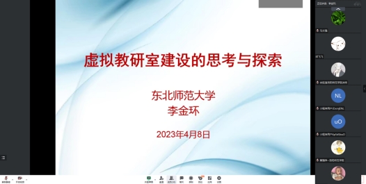 2023年4月8日,物理学师范专业国家级实验教学示范中心(东北师范大学)主任、教育部首批大学物理实验课程虚拟教研室(东北师范大学)负责人、《物理实验》执行主编李金环教授受邀以“虚拟教研室建设的思考与探索”为题做线上报告,李金环主任从教学理念、课程建设、人才培养、实验教学体系构建、实验室管理与运行、虚拟教研室组织架构与活动开展等多个方面的经验与思考进行了分享,在报告后的交流环节中与李金环主任积极互动。