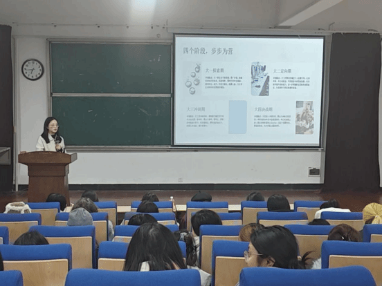 为帮助学生明晰就业方向,树立科学长远的规划意识,问礼书院二号学生社区于12月30日晚在A6-116举办“规划未来 成就自我”职业生涯规划专题讲座。本次讲座邀请问礼书院一号学生社区育人导师、英语专业优秀毕业生王艳格主讲。