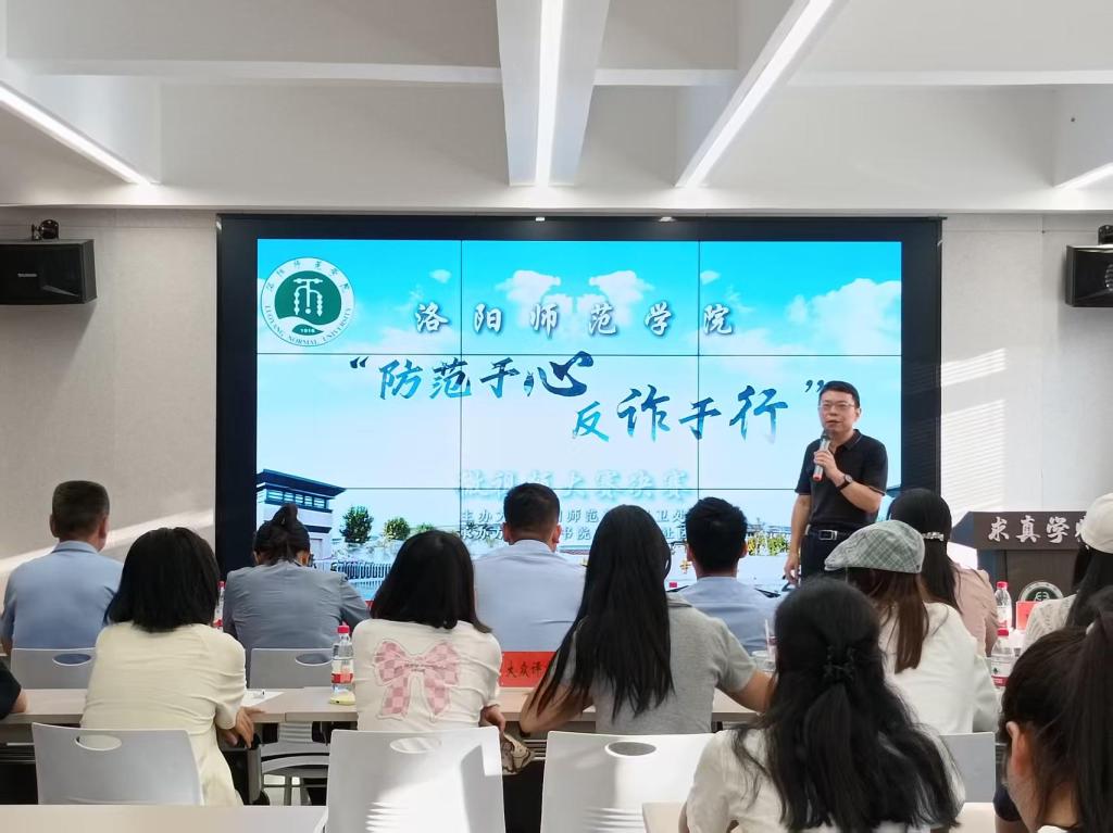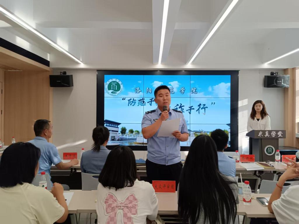 6月6日下午,洛阳师范学院“防范于心,反诈于行”反诈骗微视频比赛决赛在书院社区求真学堂举行。本次大赛由保卫处主办,问礼书院2号学生社区承办。李村镇派出所民警郭朝辉、赖超龙,学校保卫处处长朱胜利、副处长王子须,龙门书院2号学生社区党委副书记金宜洛,问礼书院2号学生社区党委书记褚卫东、副书记蔡云改等出席并担任本次决赛专家评委。学生代表大众评审团50余人参加。书院社区育人导师李雨霏担任主持人。