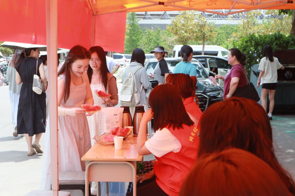 在宿舍门口,“‘助力毕业起航’学生党员志愿服务站”格外醒目。面对炎炎酷暑,书院为毕业生及家长们准备了饮用水、防暑药品和清凉西瓜等解暑物资,为挥汗如雨的毕业生与舟车劳顿的家长送去沁润心脾的凉意和临别的关怀。党员志愿者们躬身搬运行李、解答离校流程的身影,让“最后一公里”的离校路途满载温情,用实际行动诠释“哪里有需要,哪里就有党员先锋”的担当。