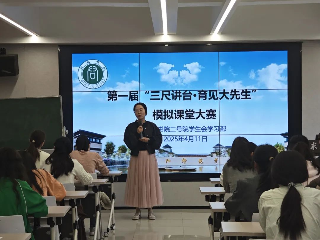 为进一步传承和弘扬我校百年师范特色,秉承“敬业奉献,为人师表”的校训精神,强化学生对教师职业的尊重和认同,提升师范技能和综合素质,为学生投身教育事业打下良好的实践基础。问礼书院2号学生社区举办了第一届“三尺讲台·育见大先生”模拟课堂大赛。