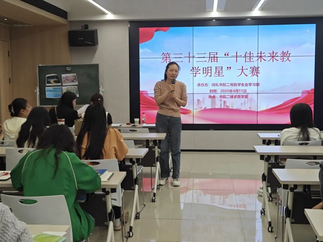 比赛伊始,书院党委副书记尚玲玲发表讲话,她强调此次大赛是书院贯彻落实师范教育理念的关键举措,对于强化师范学生对教师职业的尊重与认同,提升师范技能与综合素质意义非凡。同时,这也是问礼书院 2 号学生社区 “问礼知行” 师范生综合素质系列活动的重要组成部分,旨在培育具备高尚职业道德素养、拥有持续专业发展潜力的高素质教师队伍,为教育事业源源不断地输送新鲜血液。