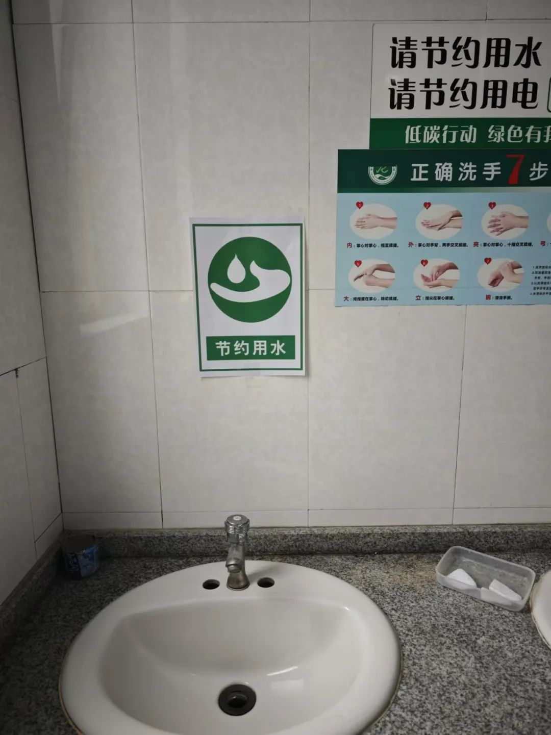 书院在公共区域集中用水处张贴节水标志与温馨提示,通过“低头可见、抬头可感”的视觉提醒,引导师生养成随手关水、合理用水的习惯。此外,书院利用学生所在学院电子屏滚动播放节水主题海报与宣传标语,以动态画面和简洁口号强8化传播力,使节水观念深入人心。