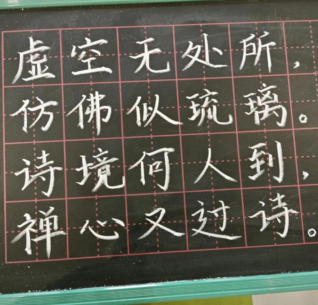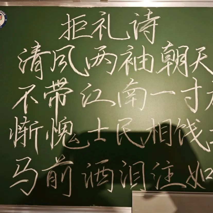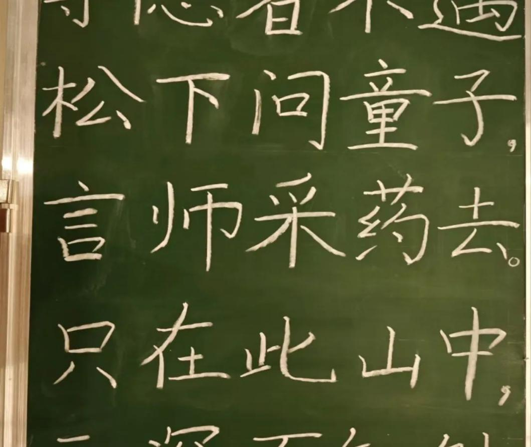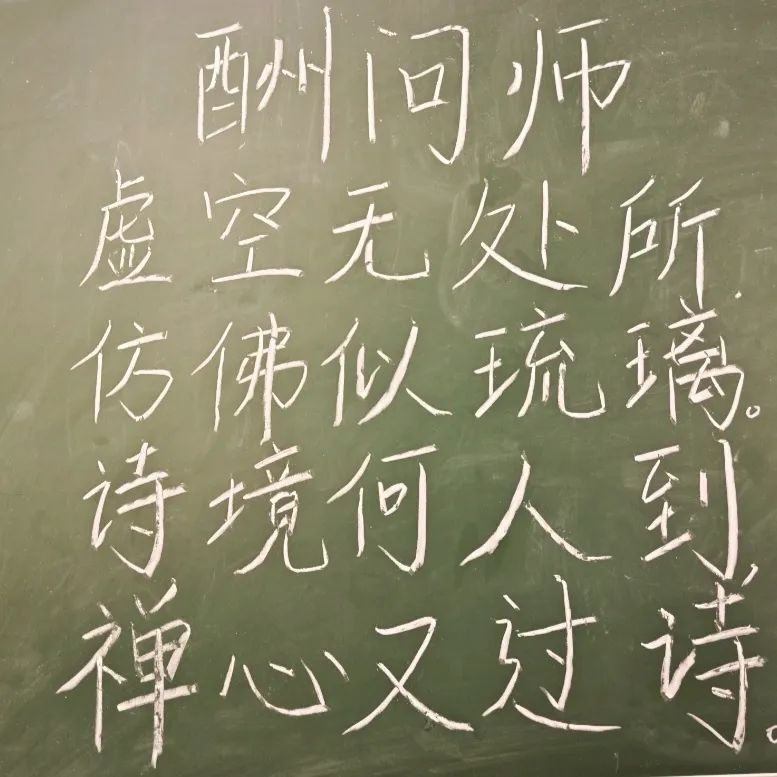 三尺讲台,粉笔是教师的“魔法棒”。比赛现场,同学们在黑板前各展所长。有的用粉笔勾勒出遒劲有力的板书,一笔一划气势磅礴;有的精心设计版面,将诗句与简笔画结合,黑白辉映间充满创意。粉笔灰簌簌飘落,却掩盖不住大家对教师职业的向往,每一幅板书都是对师道传承的生动诠释。