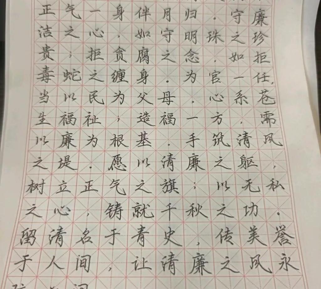 当钢笔尖轻触纸面,墨痕流转出工整与力量。参赛同学屏息凝神,有的书写经典诗词,有的摘抄教育箴言,一个个方块字排列整齐,或刚劲挺拔,或娟秀灵动。笔尖在纸上沙沙游走,将对文字的热爱融入每一笔转折,在方寸之间尽显扎实功底,让硬笔书法的魅力跃然纸上。