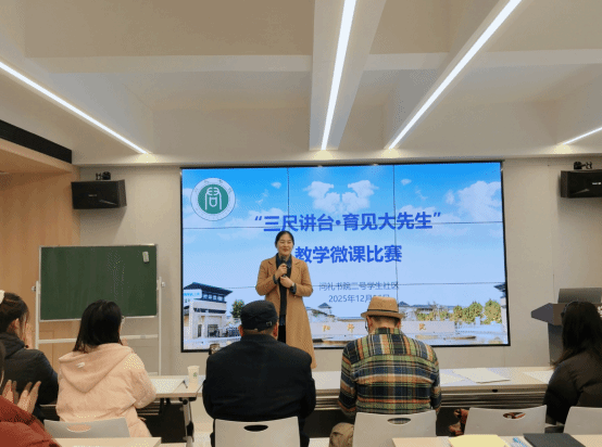 三尺讲台展风采,方寸课堂见真章。12月26日下午,问礼书院二号学生社区在求真学堂举办“三尺讲台·育见大先生”教学微课比赛。经过初赛选拔,12名选手脱颖而出。比赛特邀学业导师周显峰、范俊铭以及学生代表担任评委,书院党委副书记蔡云改主持。