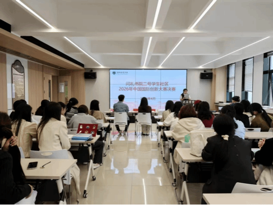 为激发学生创新精神与实践能力,搭建创新创业交流展示平台,问礼书院二号学生社区于4月16日在求真学堂举行2026年中国国际创新大赛答辩指导会。数学科学学院就业创业办公室副主任丁文轩、教育科学学院就业创业办公室主任朱琳、各项目指导老师以及学生代表参加。