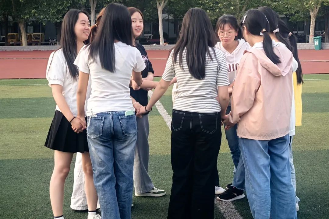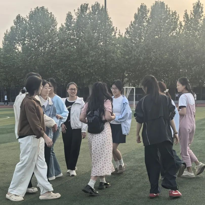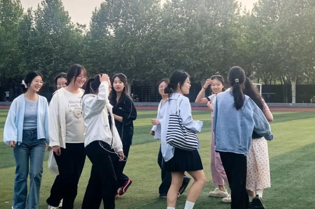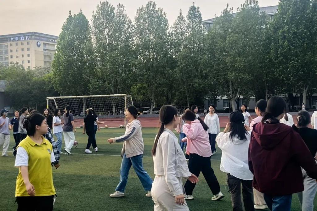 活动伊始,“大风吹游戏迅速点燃现场气氛。参与者围坐成直径约10米的巨大圆圈,在主持人的指令下,此起彼伏的欢笑声回荡在操场上空。“吹穿白色运动鞋的同学!指令一出,二十余名同学应声跃起,争相寻找新座位。某同学在三次抢座失败后主动担任指挥,她笑着说:"这个游戏不仅考验反应力,更让我们在欢笑中拉近了距离。"活动现场,不少同学掏出手机记录这欢乐时刻,自发形成的“人浪成为操场上一道亮丽的风景线。