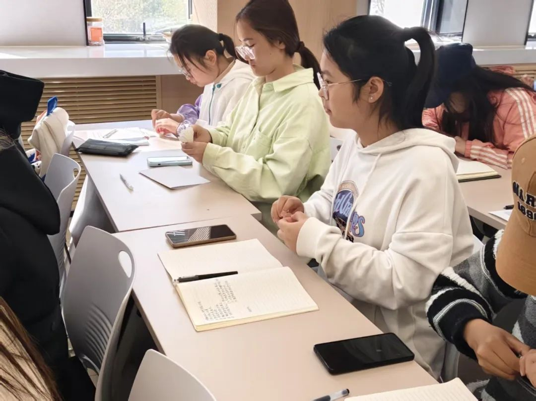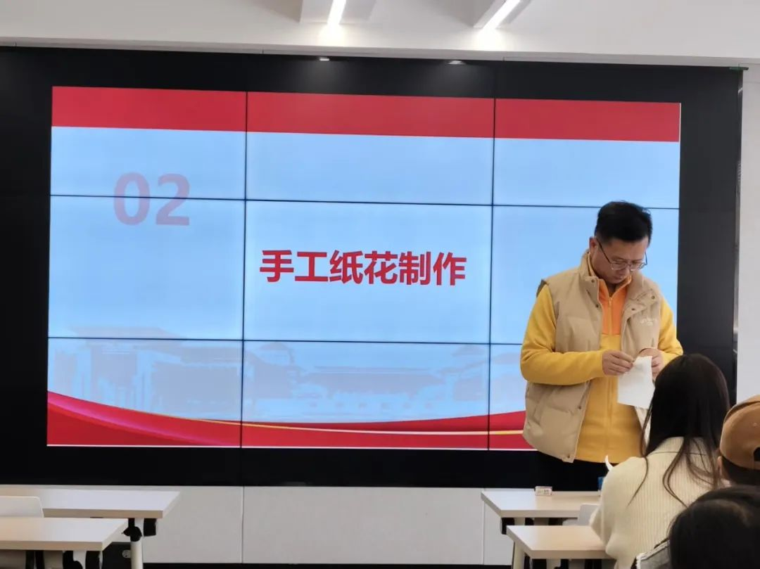 在“手工纸花制作”环节,杜慧龙详细讲解纸花制作技艺的历史渊源与象征意义。同学们手持素纸、细铁丝等材料,折瓣、塑形、扎结,将缅怀之情倾注于指尖。一朵朵白菊与红莲渐次绽放,既是对先烈的无声祭奠,亦是对红色精神的具象传承。青马班学员表示:“纸花虽轻,却承载着我们对英雄的敬意与继承遗志的决心。”
