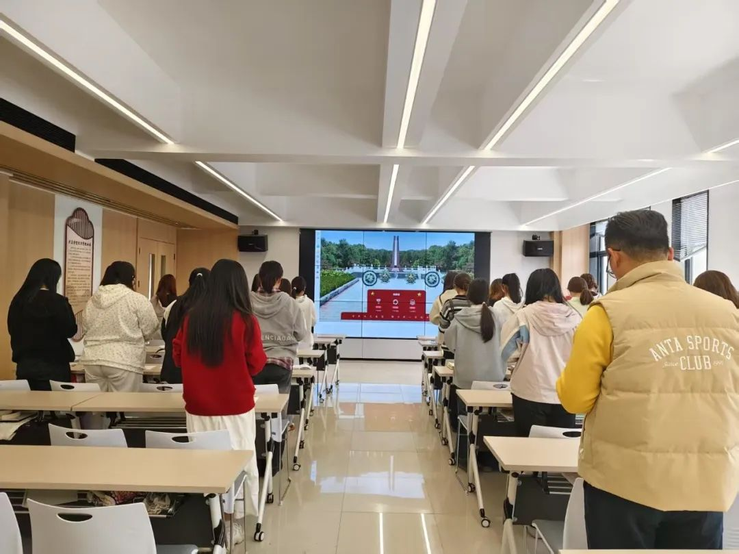 活动尾声,全体师生轻放纸花于长桌之上。素白与赤红的花瓣层层铺展,如星火聚成光河。灯光渐暗,会场陷入片刻静默,唯有纸花在风中微颤,仿佛与英魂低语。有学生垂首闭目,将掌心覆于花上;有人凝视花瓣,任泪水无声滑落。