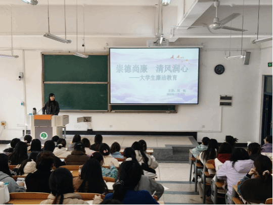 刘畅以“崇德尚廉,清风润心”为主题,从廉洁教育的“是什么”“为什么”“如何做”三个方面出发,系统阐释了廉洁教育的核心内涵、重要性与实践路径。她深刻剖析了开展廉洁教育的现实必要性,通过大学生不廉洁行为与学生干部不良作风的案例,向全体入党积极分子提出建议,当代大学生应积极涵养诚实守信、勤俭节约的优良作风,主动参与廉洁行动;学生干部更要牢记服务宗旨,永葆理想情怀,积极营造平等公正的氛围。