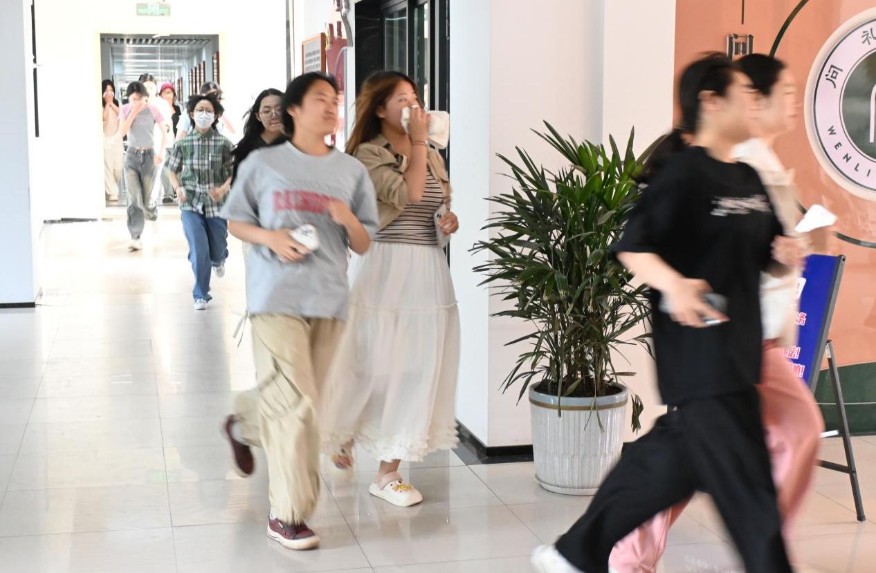 随着警报声响起,消防逃生疏散演练正式开始。在育人导师、生活导师和工作人员的引导下,同学们迅速反应,捂住口鼻,弯腰低姿,沿预定疏散路线有序撤离至安全区域。整个演练过程紧张有序,达到了预期效果,有效检验了书院社区应急疏散预案的可行性。