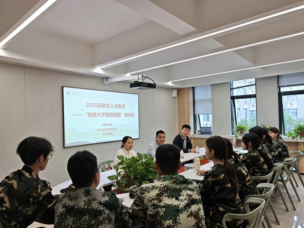为强化双院协同育人能力,提升人才培养质量,引导新生科学规划大学生涯、明确发展方向。9月18日下午,问礼书院3号学生社区联合外国语学院组织开展了新生座谈会。外国语学院党委书记、书院院长陈朝魁,外国语学院副院长郝周绍、育人导师尚瑞雪及2025级新生代表共同参加了座谈会。