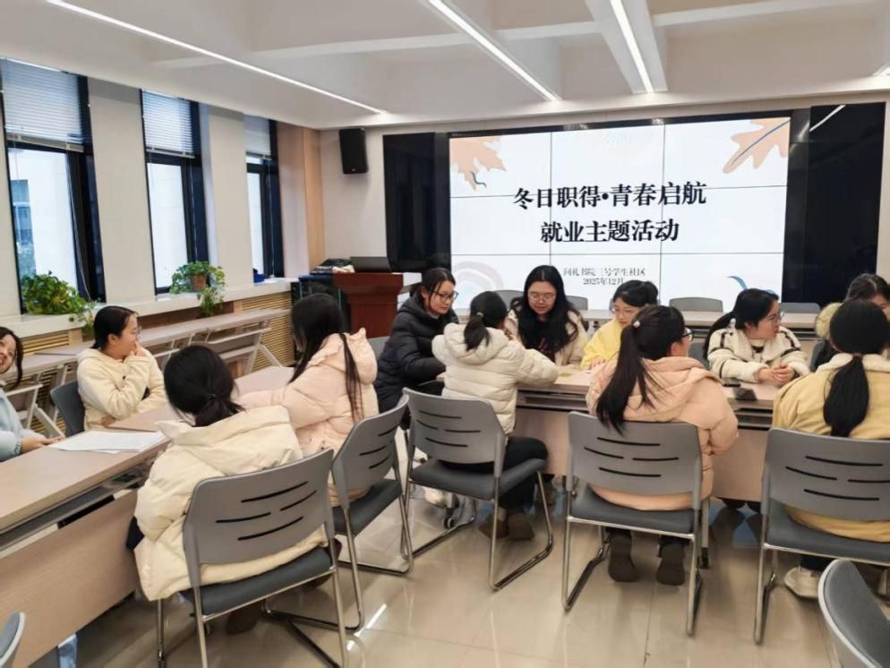 为帮助学生增强职业认知、正确认识自我,提升协作沟通能力,12月8日下午,问礼书院三号学生社区在书院二楼大先生讲堂开展“冬日职得·青春启航”就业主题活动。