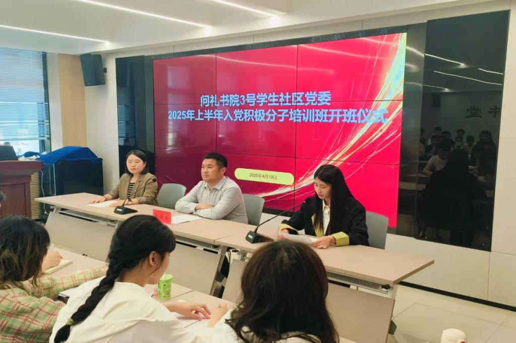 4月10日,问礼书院3号学生社区党委举行2025年上半年入党积极分子培训班开班仪式。问礼书院3号学生社区院长陈朝魁出席,书院及机关二党委、教辅单位党委、研究生院等入党积极分子共75人参加,仪式由问礼书院3号学生社区党建与思政办公室主任尚瑞雪主持。