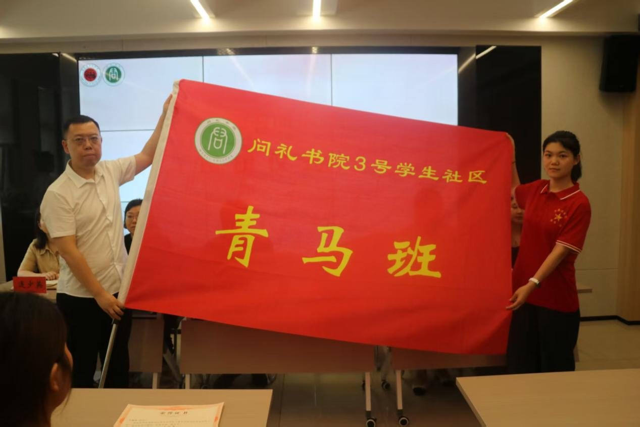 问礼书院3号学生社区、马克思主义学院党委书记吕鹏为书院社区第二期青马班和马克思主义学院第十三期永信班授旗,他强调:旗帜承载着马克思主义的信仰与青年的责任,希望新一期学员接续奋斗,勇担使命,成长为政治坚定、德才兼备、素质全面、堪当重任的坚定的马克思主义者。