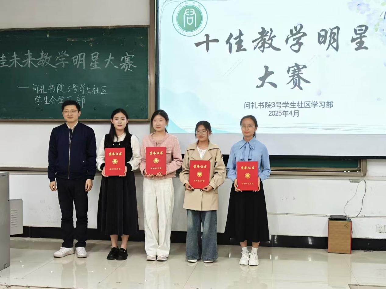 此次大赛为参赛学生搭建了成长进步的优质平台,更为观摩的师生们开启了一扇深入理解教学艺术的新窗口,在校园营造出浓厚教育学术氛围,为教育教学创新注入活力。未来,问礼书院3号学生社区将继续创新,探索多元活动形式,引领学生钻研教学方法与理念,激励青年学子投身教育事业,以青春力量助力教育强国建设。