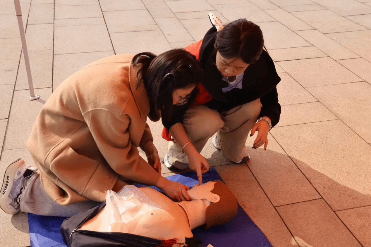 本次活动采取理论讲解与实操训练相结合的方式,为同学们呈现了一堂生动实用的生命安全教育课。社团成员围绕应急救护知识进行了系统讲解,运用通俗易懂的语言,详细介绍了心肺复苏原理、适用场景及注意事项,重点讲解了成人与婴幼儿气道异物梗阻的不同处理方法,将专业知识转化为易学易用的内容,确保同学们能够听得懂、记得住、用得上。在实操训练环节,同学们分组在模拟人上进行胸外按压练习。志愿者们全程一对一进行指导示范,耐心纠正按压手势、力度与频率,手把手教授成人海姆立克腹部冲击法及婴幼儿背部叩击、胸部按压等急救操作要点。全体同学认真学习、积极参与,切实掌握了守护生命的过硬本领。