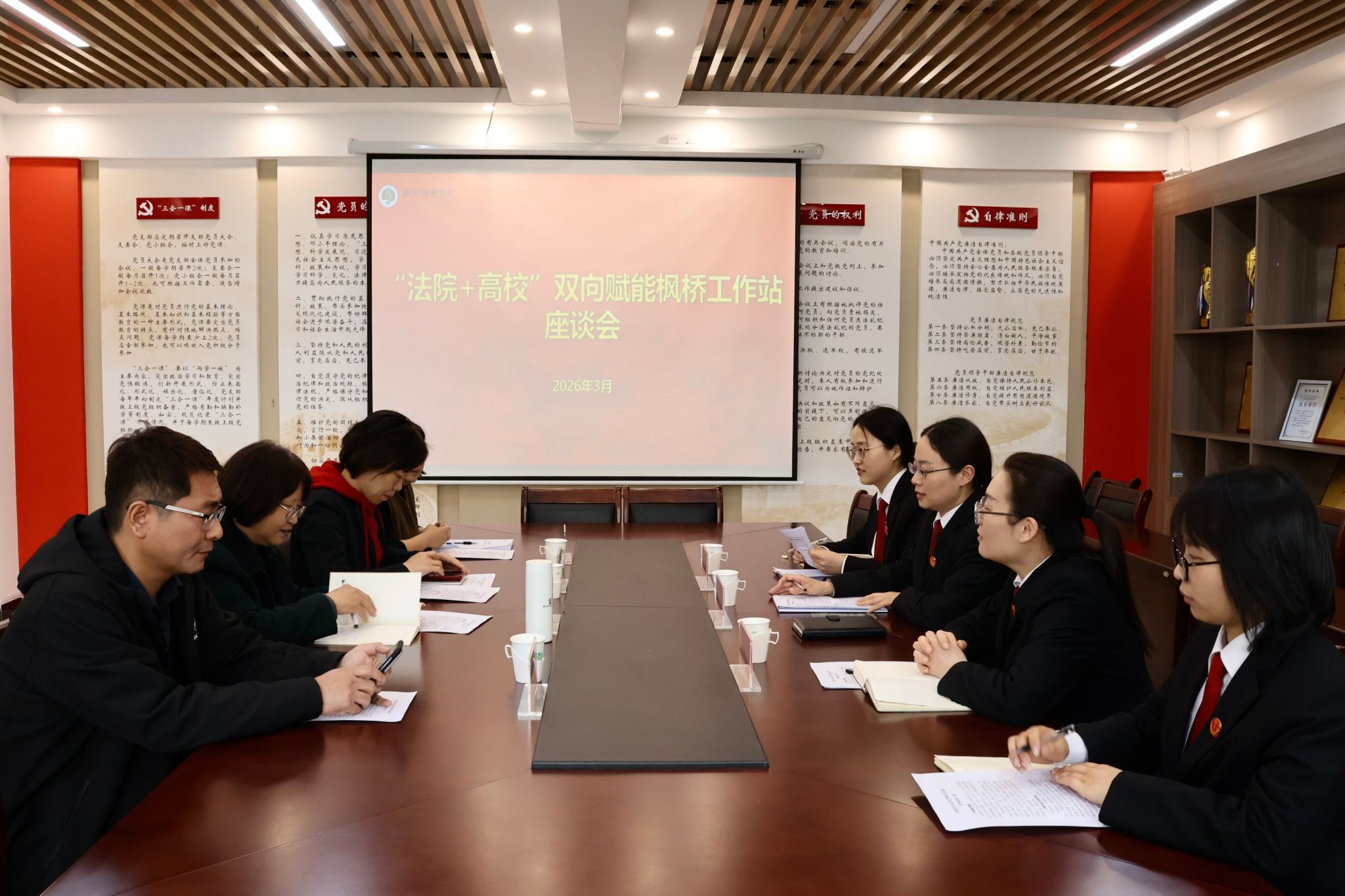 会上,双方围绕庭审进校园、普法宣传、学生实习、支部共建等议题深入交流,达成共识,旨在构建纠纷化解与实践育人的双赢格局。