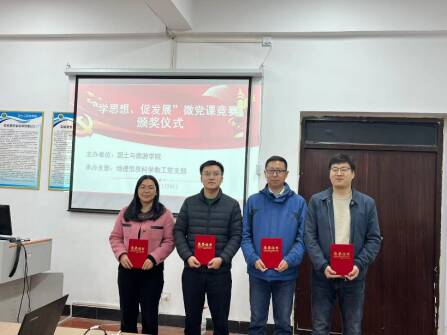 本次大赛还设置了课程思政专题,吕颖同志将新时代北斗精神、“两弹一星”精神和载人航天精神融入《卫星导航定位原理与应用》获得一等奖,张晓萍同志结合7.20郑州洪涝灾害监测思政案例讲授《遥感数字图像处理》,徐丹同志将珠峰高程测量团队求真务实、顽强拼搏和团结协作精神融入《测量学》,获得二等奖,孙子文同志将治水历史和治水传承融入《人文地理学》,张伟阁同志将数学家的学习精神融入到《微积分》课程,获得三等奖