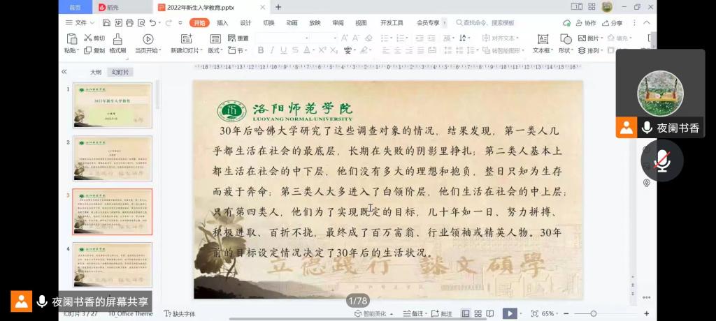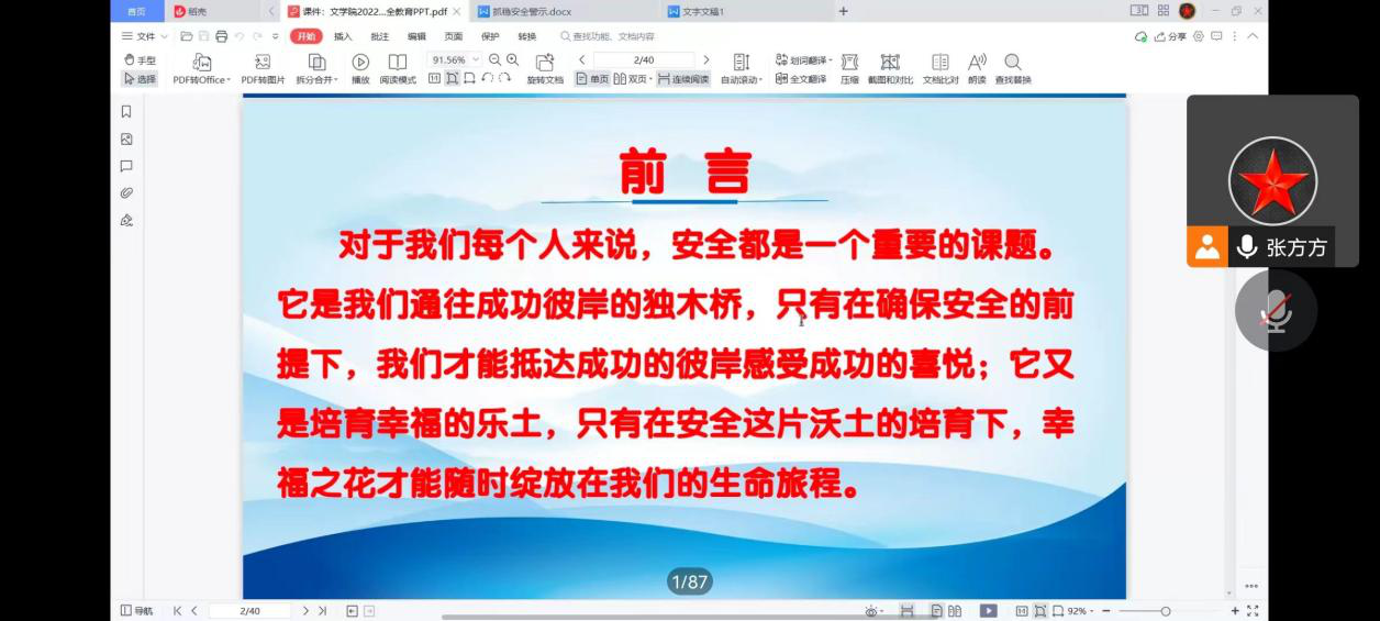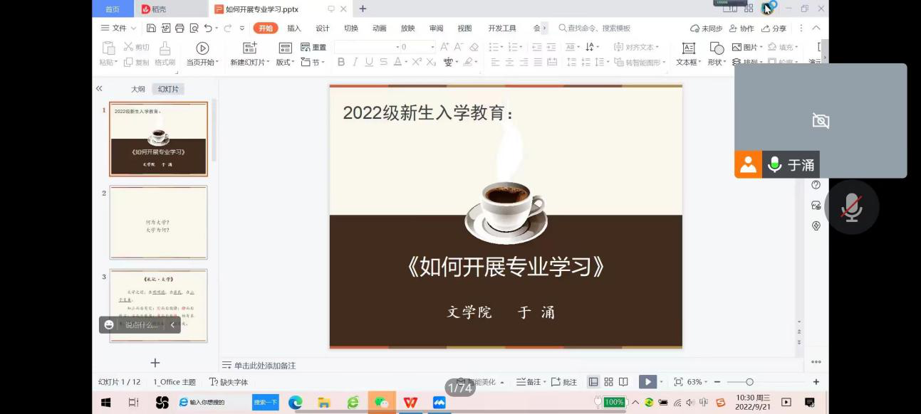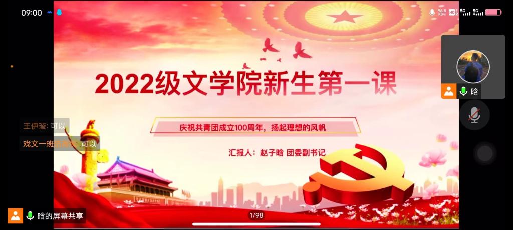 金风玉露一相逢,从此携手迈新程。9月19日—21日,文学院通过腾讯会议直播平台举办2022级本科新生入学教育活动。本次活动全程由22级辅导员李楠老师主持,文学院院长王建国、党委书记张方方、党委副书记张曼、副院长于涌、副院长李亚等与22级的340名本科新生们相聚云端,开展了一系列有高度、有温度、有深度、有情怀的“开学第一课”。