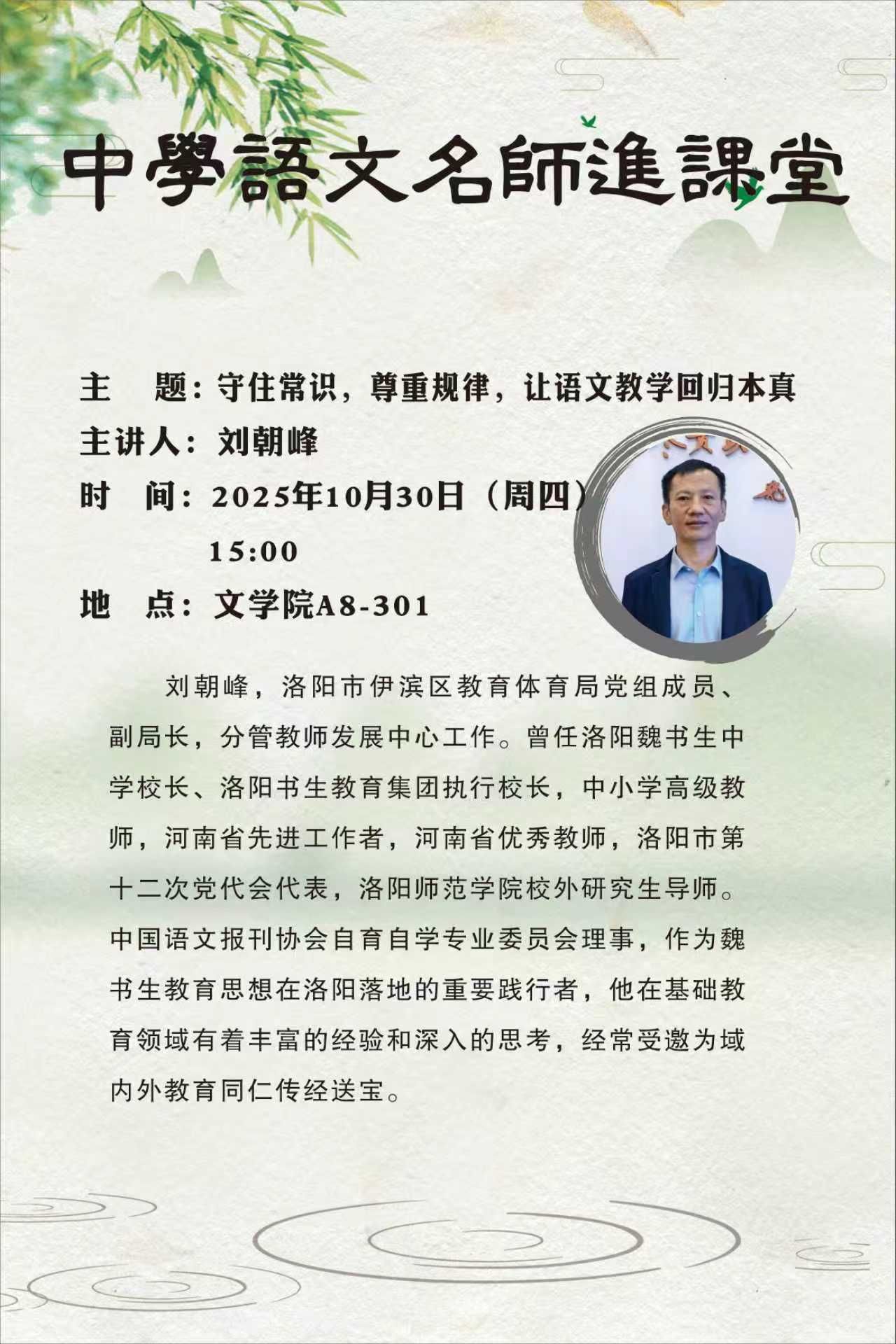 为进一步深化UGS 协同育人培养机制,持续开展教师教育联动发展共同体建设,加强高校与地方政府、中小学的合作,丰富课堂教学,提升人才培养质量,根据学校相关要求,我院将于10月-12月定期举办“名师进课堂”系列讲座。第一期“名师进课堂”系列讲座具体安排如下: