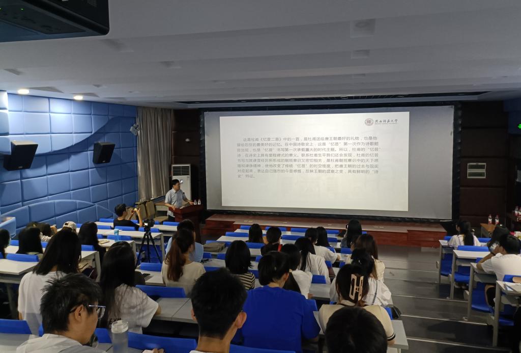 6月16日晚,陕西师范大学文学院教授、博士生导师傅绍良教授应文学院邀请,于A8-102报告厅以《“昔”与“忆昔”:杜甫往事书写的文学史意义》为题进行学术报告。讲座由文学院于涌副院长主持,文学院师生60余人参加。