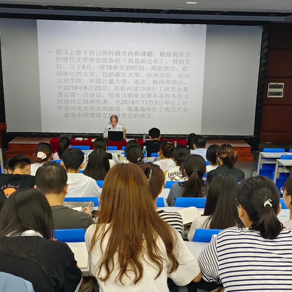 9月11日下午七点至九点,南开大学卢盛江教授应文学院邀请,在A8-102教室以“唐诗之路”为题展开讲座,会议由文学院院长王建国教授主持,文学院师生80余人到场学习。