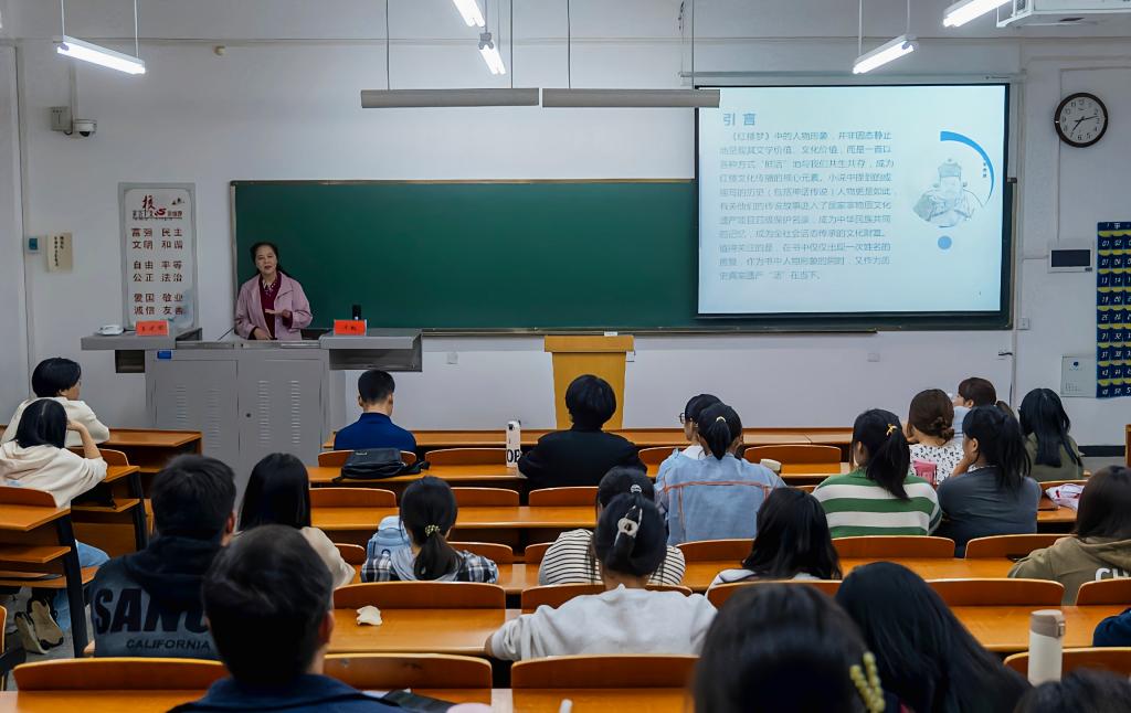 10月17日晚,河南省红楼梦研究会会长、中国红楼梦学会常务理事闵虹教授应文学院邀请,于G2-210教室以《<红楼梦>与河南之间的故事》为题展开讲座。讲座由文学院院长王建国教授主持,师生70余人到场学习。