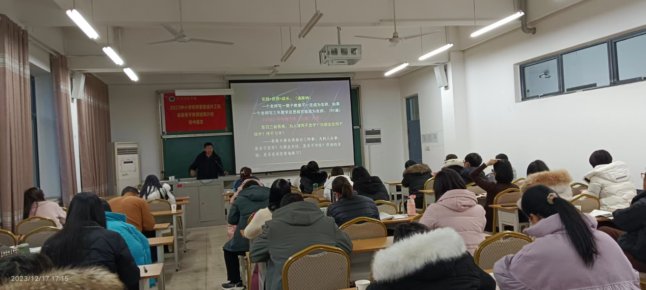 2023年12月17日,河南师范大学耿红卫教授应邀为素质提升工程省级初中语文骨干教师培训班学员做《初中语文有效教学的实施策略》专题讲座。