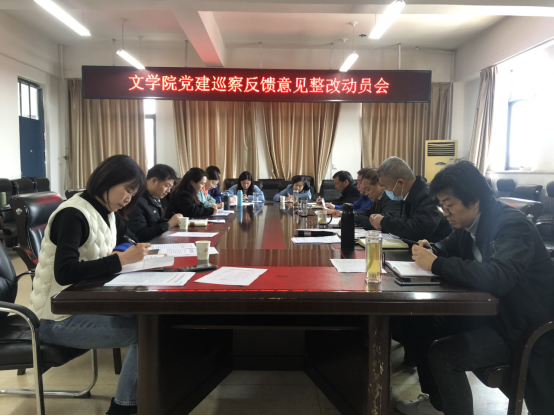 3月25日下午,文学院在428会议室召开党建巡察反馈意见整改动员会。学院党委委员、党支部书记、全体辅导员参加会议,会议由党委书记陈立新主持。