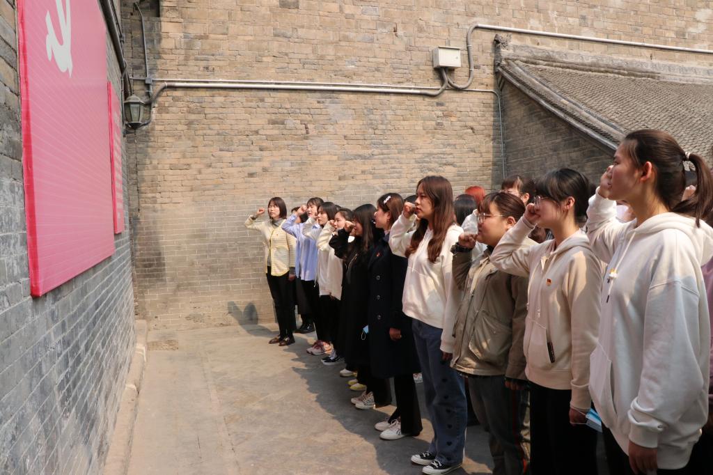 走进洛八办,首先映入眼帘的是院中一口水井,据讲解员介绍,这口古井曾在抗战时期为八路军储存物资方面发挥着重要作用,是一口“英雄井”。在讲解员的带领下,全体党员认真参观了每一处遗址,每一幅照片,在每一个展室驻足观感,感受革命岁月,聆听历史故事,了解了“洛八办”建立的历史背景以及在抗战时期发挥的关键作用。党员们深深感受到革命先烈不惧艰辛为国家安全和人民幸福无私奉献的精神。接着,全体党员在宣誓墙下重温入党誓词,深刻地表达自己对党的忠诚、为党的事业奋斗终身的决心与愿望。活动最后,大家在党旗下深情合唱歌曲《我和我的祖国》。