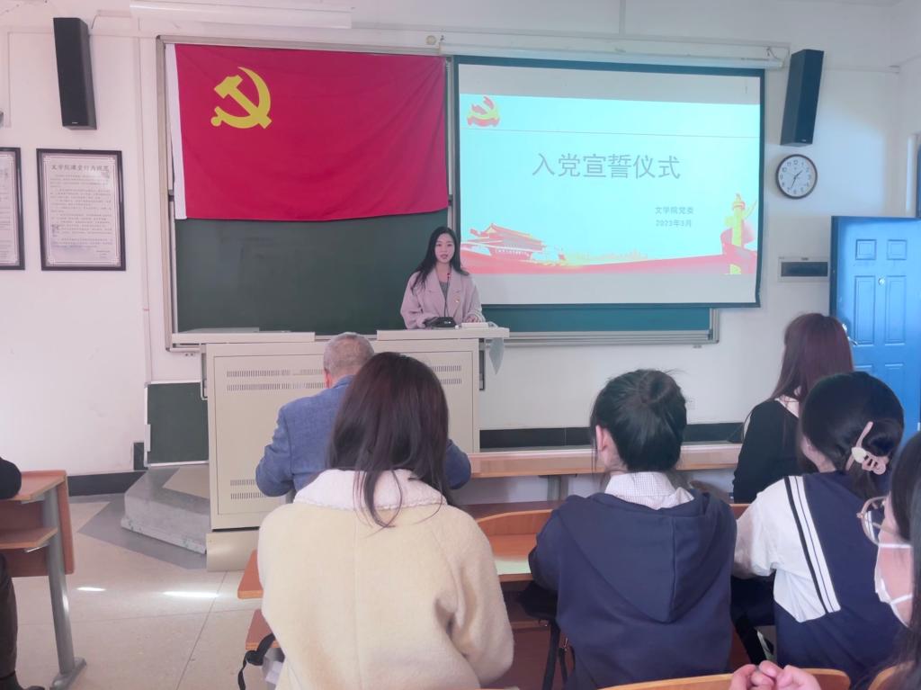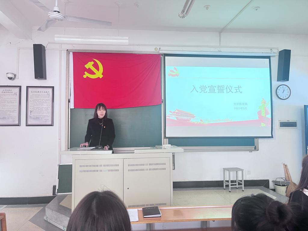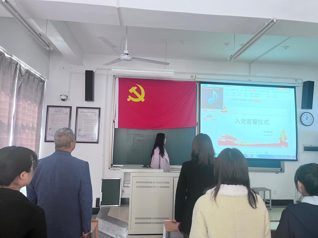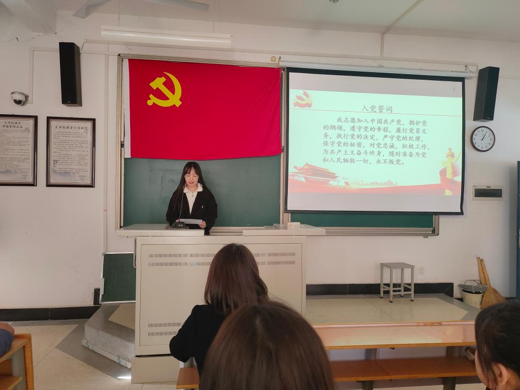 3月3日中午,文学院于A8-314举行预备党员入党宣誓仪式。文学院党委书记张方方,党委副书记张曼及68名及新发展的预备党员参加会议,会议由辅导员朱柏帆主持。