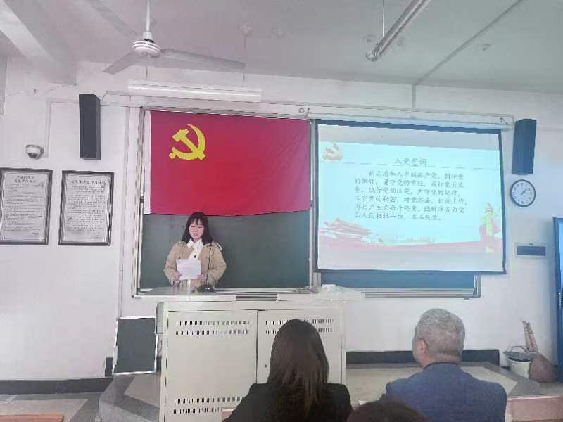 大会第一项,奏唱中华人民共和国国歌。之后,张曼宣读参加宣誓的预备党员名单,带领预备党员面向党旗,庄严宣誓。新老党员代表索宁泽和岳文青分别发言,她们表示,今后一定在党组织和广大群众的监督下,牢记入党誓词,努力实践学习,在工作和生活中发挥先锋模范作用。