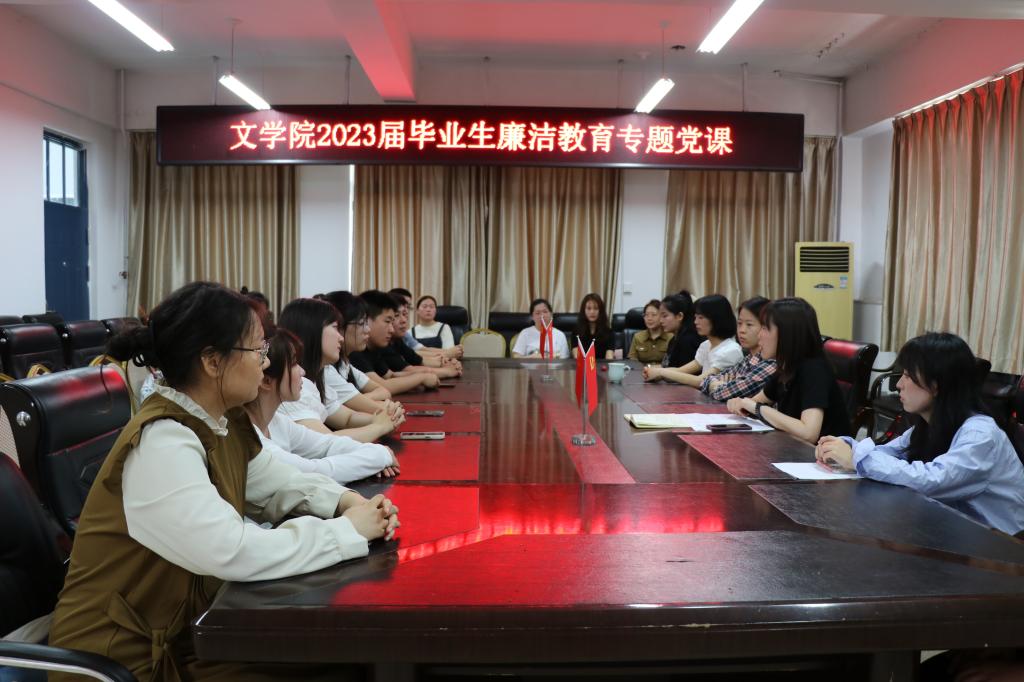 为扎实推进主题教育,进一步加强大学生廉洁教育,引导毕业生植廉于心、践廉于行,努力成长为堪当民族复兴重任的时代新人,5月17日上午,文学院于A8-428召开2023届毕业生廉洁教育专题党课,本次党课由文学院党委副书记张曼主持,毕业生代表参加。