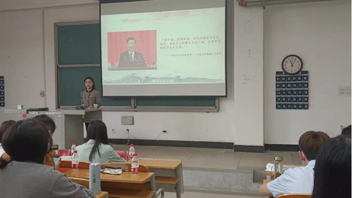 5月26日文学院与新闻传播学院联合举办“奋进新征程 建功新时代”思政大课,文学院党委书记张方方、副书记张曼、新闻传播学院党委副书记金宜洛出席活动。