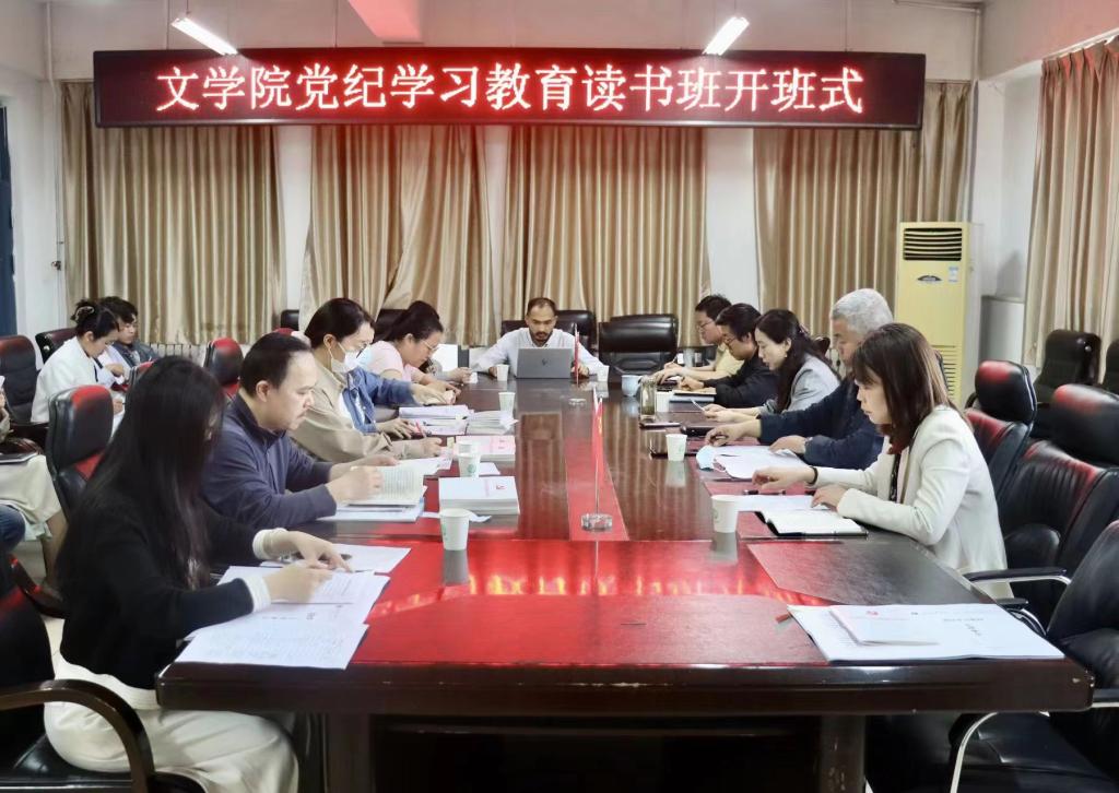4月29日上午,文学院党纪学习教育读书班在A8-428开班,组织党员领导干部通读精读研读新修订的《中国共产党纪律处分条例》,带动全院党员干部学纪知纪明纪守纪,始终做到忠诚干净担当。文学院领导班子、全体科级干部参加,开班仪式由文学院院长刘恒主持。