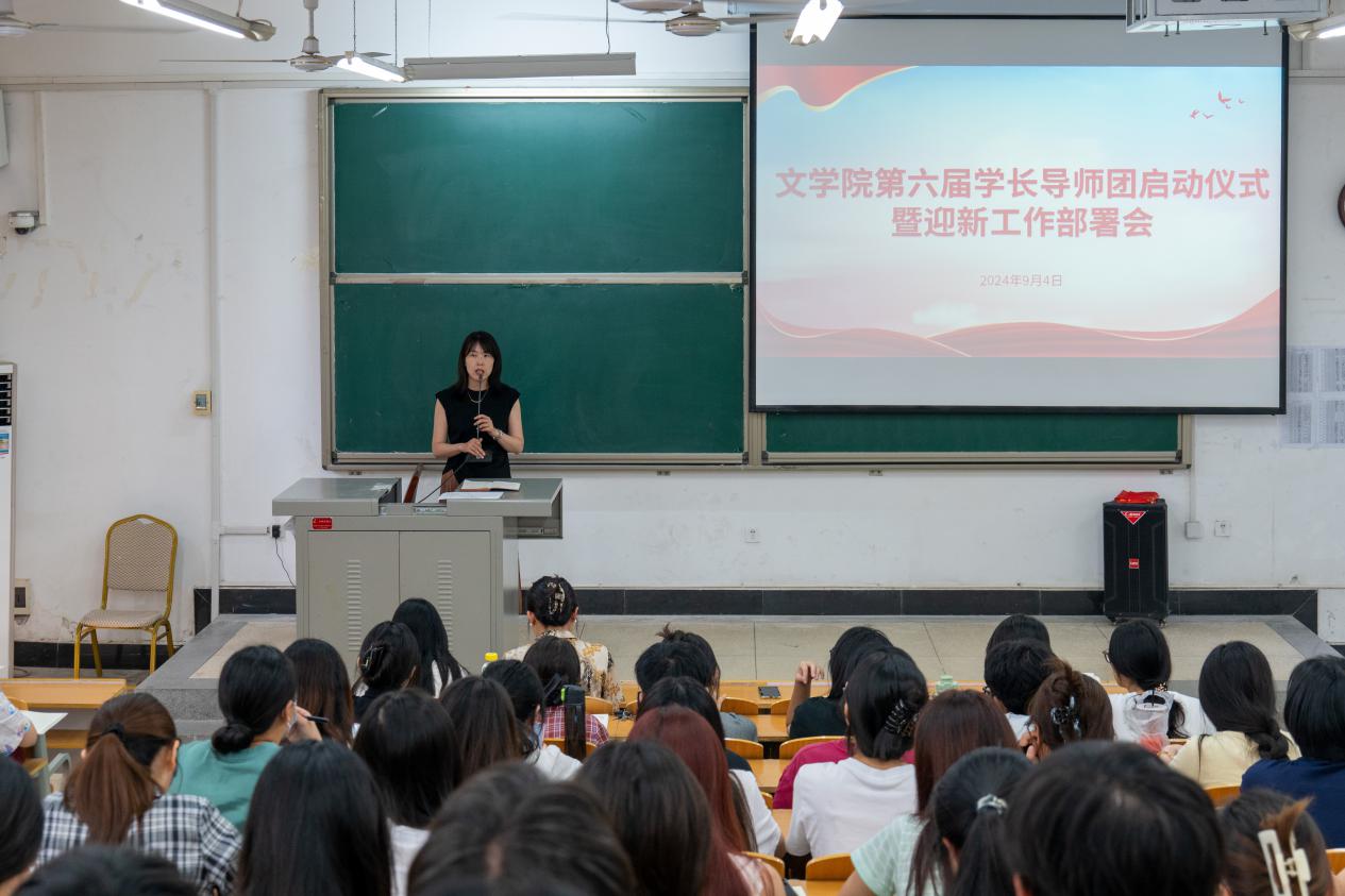 9月4日下午,文学院在A8-101召开第六届学长导师团启动仪式暨迎新工作部署会。文学院党委副书记张曼、辅导员陈晓于、朱柏帆、第六届学长导师团成员及2024级新生班助参加。会议由辅导员朱柏帆主持。
