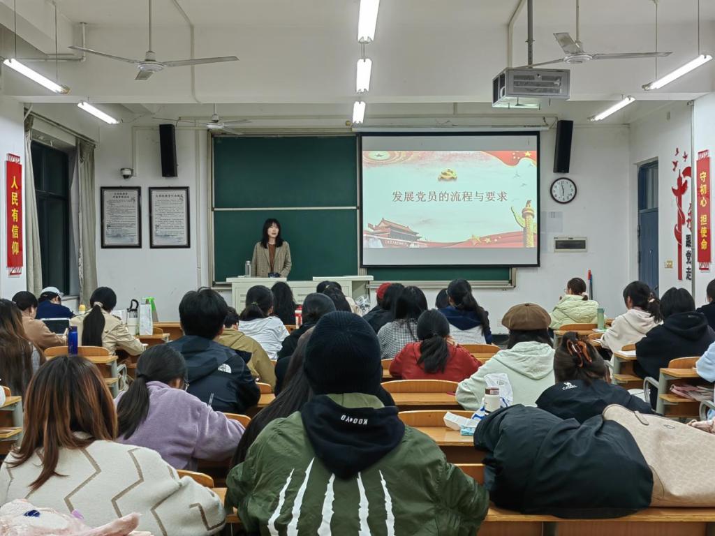 11月1日晚,文学院于A8-314开展了以“发展党员的流程与要求”为主题的党课培训,本次党课由文学院党委副书记张曼主讲,2024下半年全体入党积极分子参加。