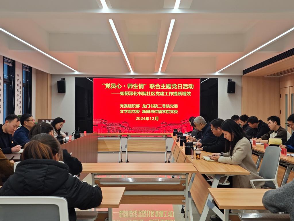 12月10日下午,校党委组织部联合龙门书院二号院党委在崇学讲堂开展“党员心·师生情”主题党日活动。校党委组织部部长索秋平、副部长李庆辉、张亚刚及龙门书院二号院班子成员、书院党支部书记及支委代表参加。