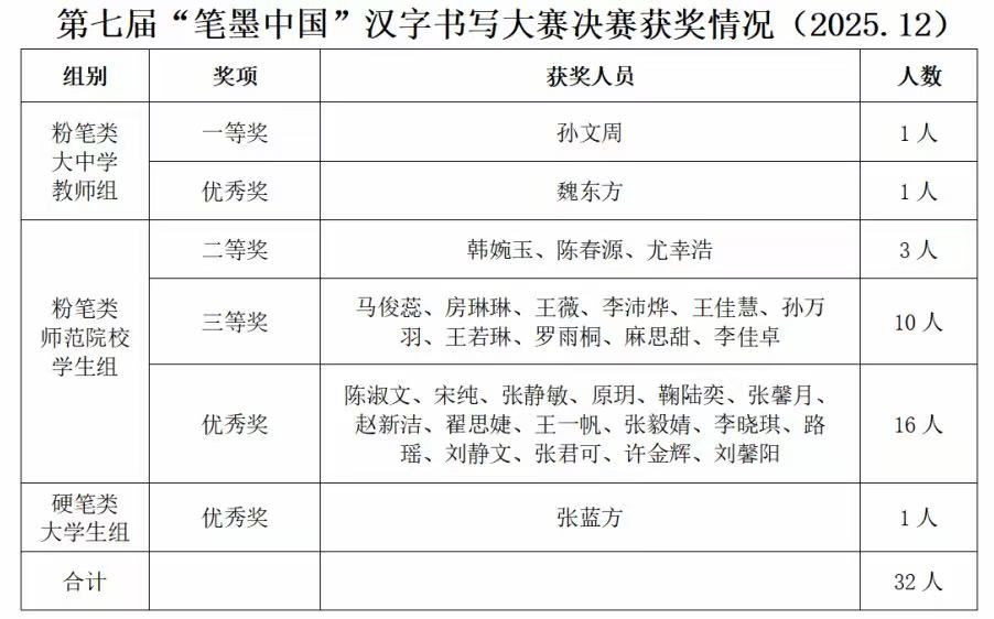 我院师生在第七届中华经典诵写讲大赛“笔墨中国”汉字书写大赛中喜获佳绩2025.12.9