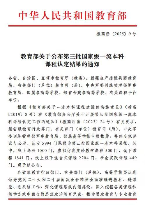 我院《三笔字训练》课程认定为国家级一流本科课程2025.12.17
