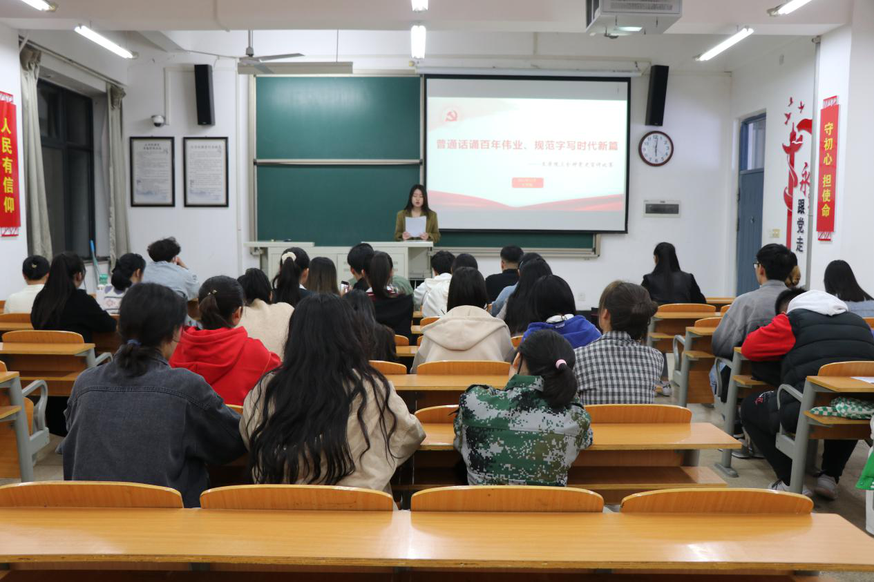 普通话颂百年伟业,规范字写时代新篇。为更好地推广并规范普通话的使用,积极响应国家号召,加强在校大学生党史教育,11月4日晚,A8教学楼举办了红色经典快拍活动、红色作品分享会、规范汉字硬笔字书法比赛及三分钟党史故事活动。此次系列活动,由学校语委指导,文学院承办,文学院学生踊跃报名,积极参加。