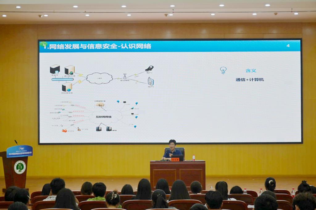 此次活动启动仪式采用“线上+线下”的形式,全省高校师生在线同步收看,线上观看终端数量达5.7万,点赞量达18.1万。我校信息技术学院(软件学院)李元臣教授作了《绿色文明上网,拒绝网络诈骗》的主题报告,为全省高校师生上了一堂网络安全思政课。