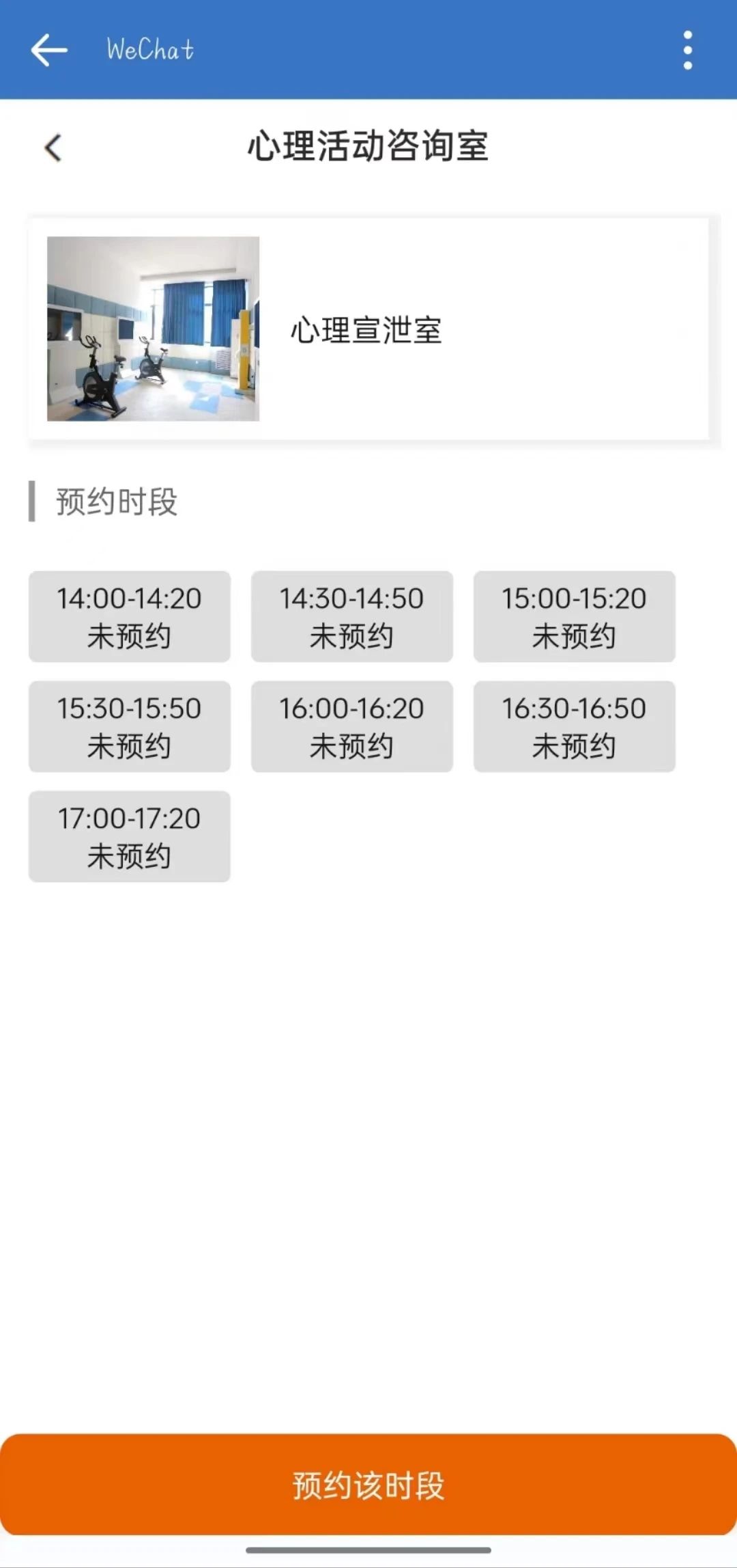 心理中心开放日为每周四下午,仅可预约最近一个周四的体验,每周五开放预约通道,每个人只有一次预约体验机会。