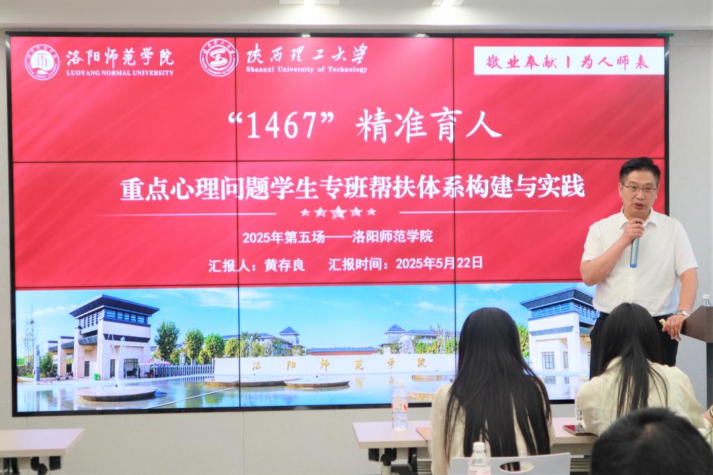 为切实提升心理育人队伍精准识别与有效干预大学生心理危机的能力,全方位筑牢大学生心理健康防护网,5月22日下午,由党委学生工作部(学生处)、心理健康教育与咨询中心主办,问礼书院2号学生社区协办的大学生心理危机干预专题报告会在书院社区求真学堂举行。特邀陕西理工大学心理健康教育中心主任黄存良教授担任主讲人,学校心理健康教育与咨询中心、教育科学学院应用心理学系全体教师、各书院社区心理健康中心主任及育人导师代表参加。报告会由党委学生工作部(学生处)副部长李广主持。